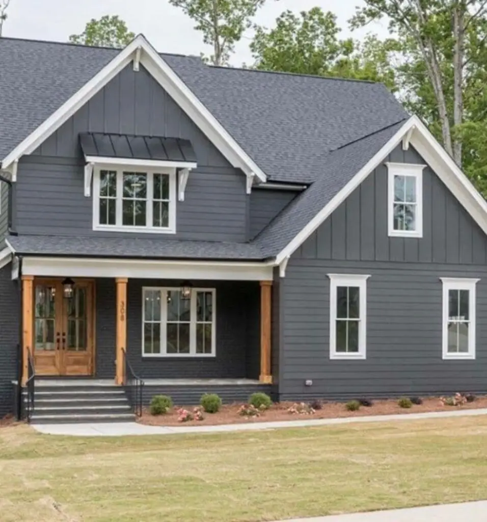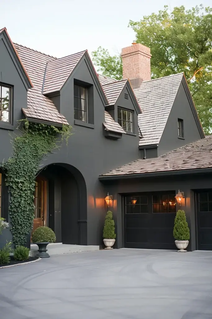 Bold, elegant, and undeniably striking, charcoal gray is making a powerful statement in 2025. This daring hue reflects the design world’s shift toward bolder choices and adds instant sophistication to modern exteriors. Charcoal gray pairs beautifully with natural materials like wood, stone, and brick, and works equally well as a primary or accent color.